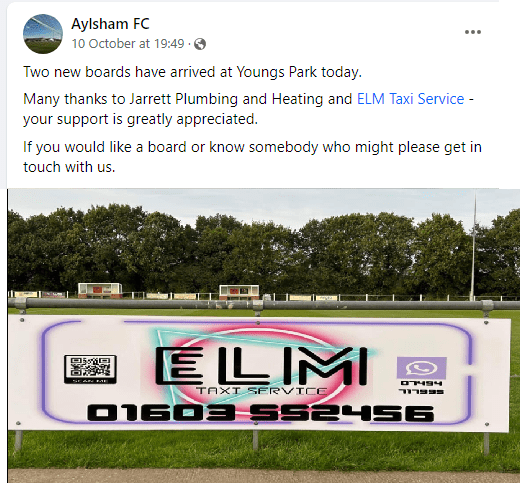 New pitch side advertisement board went up at Aylsham Football Club/ Youngs Park today.